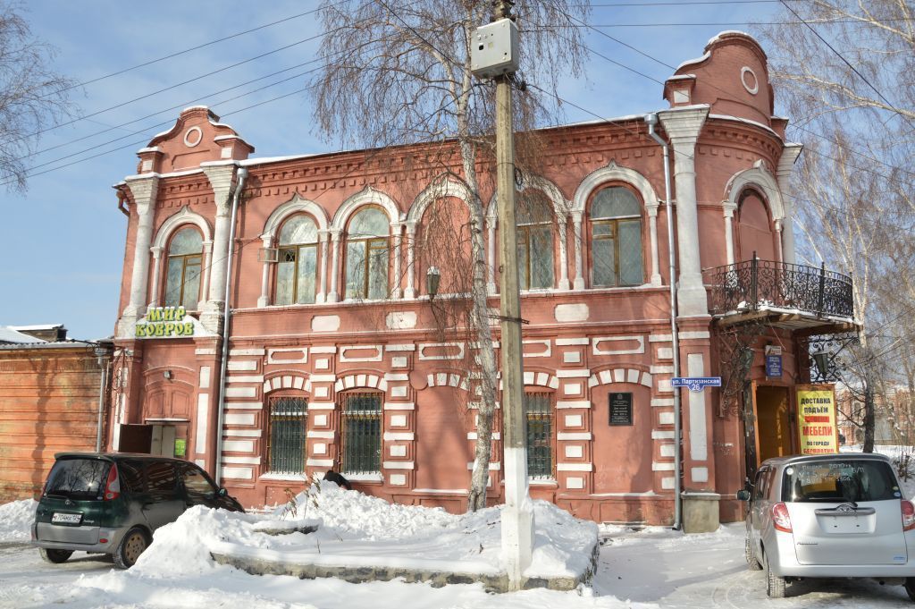 1. Градостроительные характеристики1.1. Местоположение в системе городской застройкиЗдание расположено в восточном углу квартала, ограниченного ул. Партизанской, ул. Комсомольской, ул. Ленина и ул. Патушинского. 1.2. Габариты и силуэт Габаритные размеры в плане и высотные отметки здания на кон. XIX в.1.3. Условия зрительного восприятия Преимущественные видовые раскрытия здания в радиусе визуальной доступности от перекрестка ул. Партизанской и ул. Комсомольской.2. Архитектурные и конструктивные характеристики здания на кон. XIX в.2.1. Объемно-пространственная композицияКрупное двухэтажное, с подвалом здание. Основной объем прямоугольный в плане, с небольшим входящим западным углом. Восточный угол здания в уровне второго этажа скруглен, в уровне первого этажа срезан, в нем устроен главный вход в здание, над которым расположен балкон. Со стороны юго-западного фасада у входящего угла здания расположен ризалит с балконом. Участок юго-западной стены основного объема в месте примыкания к ней юго-восточной стены ризалита раскрепован (раскрепованный участок стены имеет меньшую высоту чем основной объем). 2.2. Планировочная структураПланировочная структура здания в габаритах конструкций несущих стен и перекрытий на кон. XIX в.2.3. Виды отделки поверхности и колористическое решение фасадов и интерьеров Наружные стены лицевой кладки (без отделки) из натурального красного кирпича. Стены изнутри и потолки оштукатурены, потолки окрашены в белый цвет. 2.4. Композиция и архитектурно-художественное оформление фасадов2.4.1. Восточный (угловой) фасадКомпозиция фасадаФасад решен в одну ось дверных проемов на первом и втором этажах (на втором этаже расположен балкон со скругленной в плане фронтальной стороной), завершен раскрепованным карнизом небольшого выноса, фланкирован контрфорсами на первом этаже и круглыми ¾-колоннами – на втором. Контрфорсы и ¾-колонны в уровне подоконного пространства опираются на тумбу.Над венчающим карнизом расположен аттик криволинейного очертания с лучковым завершением в средней части и узким карнизом. Аттик фланкирован (по осям ¾-колонн) квадратными тумбами на невысоком цоколе, завершенными карнизом.Проем второго этажа с полуциркульной перемычкой.Проем первого этажа с лучковой перемычкой.Цоколь выделен уступом.Декоративное оформление фасадаКарниз аттика профилирован. По центру аттика снизу-вверх расположены горизонтальная впадина со скругленными внутрь углами и тондо в виде простой круглой рамки. Тумбы аттика декорированы одиночным квадратным бриллиантовым рустом, карниз профилирован.Венчающий карниз профилирован, в средней части декорирован метрическим рядом дентикул, прерывающимся на ¾-колоннах. Под венчающим карнизом проходит фриз в виде метрического ряда небольших квадратных выступов.В простенках второго этажа проходит тонкий пояс на уровне нижней отметки оконных проемов смежных фасадов. Балкон опирается на кованные ажурные кронштейны и имеет металлическое решетчатое ажурное ограждение.Проем второго этажа имеет обрамление, состоящее из боковин в виде полуколонн с прямоугольной базой и такой же капителью, завершенных профилированным импостом (импосты продолжены на простенках пояском аналогичного профиля), на который опирается обрамление арочной перемычки, выполненное в виде архивольта с киле