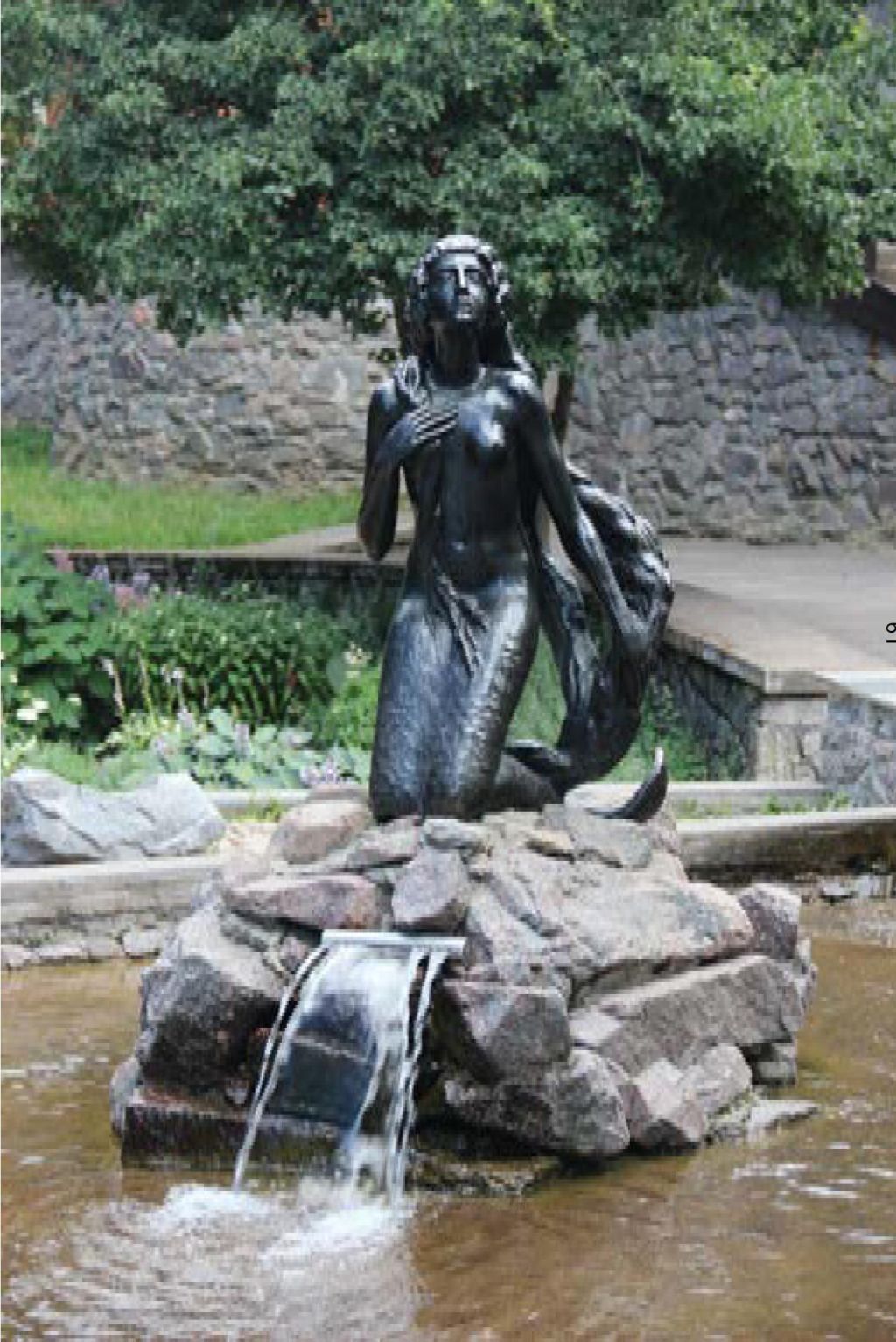 Объемно- пространственное решение:Бронзовая скульптура на постаменте-фонтане из блоков известняка, в верхнем бассейне.Архитектурно-художественное решение:Литая бронзовая скульптура русалки. Местоположение, конфигурация, габариты, материал (бронза).