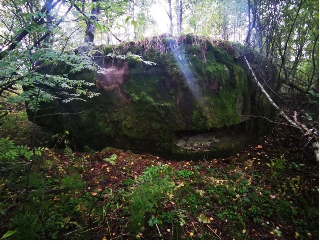 Объемно-пространственное решение:Габариты и конфигурация одноярусного сооружения, представляющего собой в плане неправильный многоугольник со скругленными углами на четыре угловые пулеметные амбразуры.Конфигурация перекрытия - плоская, переход от стены к перекрытию скруглен.Конструктивная система:исторические капитальные стены, перекрытые с противооткольным покрытием потолка из швеллеров и крыша, их материал (бетон, железобетон).Объемно-планировочное решение:Историческое объемно-планировочное решение в габаритах капитальных стен:коленчатый сквозник с двумя ружейными амбразурами обороны входа, тамбур, помещение неустановленного назначения и боевой каземат на четыре угловые пулеметные амбразуры с комендантским отсеком с перископом.Декоративно-художественная отделка интерьеров:Четыре броневые плиты (заслоны) пулеметных амбразур.Две ружейные амбразуры обороны входа.Фрагменты перископа.Двери.