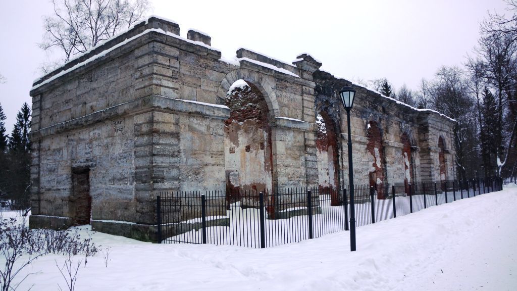 1.Объемно-пространственное и планировочное решение территории .Историческое местоположение каменной Лесной оранжереи в западной части Дворцового парка, неподалеку от Амфитеатра, в границах территории объекта культурного наследия федерального значения «Ансамбль Гатчинского дворца и парка»;историческое архитектурно-композиционное и объемно-пространственное решение территории, на которой расположена оранжерея; композиционные и визуальные связи и раскрытия с основных планировочных направлений Гатчинского парка, включая:визуальные и композиционные связи с круглым прудом, находящимся перед лицевым юго-восточным фасадом;визуальные и композиционные связи с местоположением Турецкой палатки; **в настоящее время демонтированас парковым сооружением Амфитеатр и с зеленым массивом Гатчинского парка.2.Объемно-пространственное решение.Исторические габариты и конфигурация трехчастного здания с прямоугольной в плане одноэтажной центральной частью, фланкированной двумя одноэтажными с мансардой ризалитами*;*в настоящее время в руинированном состоянии.Историческое местоположение и габариты одноэтажной, прямоугольной в плане пристройки (на период 1848 г.) со стороны садового северо-западного фасада, включающей в себя две симметричных пристройки 1790-х гг.**в настоящее время утраченаИсторическое местоположение, габариты и конфигурация крыши* - скатная (двускатная над центральной частью; односкатная над пристройкой со стороны северо-западного фасада), над ризалитами - шатровая, с переломом;историческая конструкция крыши – деревянные стропильные конструкции индивидуально для ломанной и шатровой конфигурации крыш;местоположение исторических слуховых окон крыши;материал окрытия кровли – листовой кровельный металл.*в настоящее время утрачена.3. Объемно-планировочное решениеИсторическое объемно-планировочное решение в габаритах сохранившихся исторических наружных и внутренних капитальных стен и арок, включая два внутренних анфиладных проема, ведущих из помещений фланкирующих ризалитов в центральную часть оранжереи и местоположение входного проема с крыльцом на боковом юго-западном фасаде (сохранились с 1790-х гг.). 4.Конструктивное решение.Исторические фундаменты (ленточные бутовые) – габариты, местоположение;исторические наружные и внутренние капитальные стены – местоположение, материал исполнения (кирпич; облицовка блоками туфа (исключая северо-западный фасад));5.Архитектурно-художественное решение фасадовАрхитектурно-художественное решение паркового сооружения в приемах барокко.Центрально-симметричная композиция лицевого юго-восточного фасада (два ризалита, центральная часть); облицовка цоколя блоками из известняка;**в настоящее время утоплен в культурном слое.облицовка кирпичных стен лицевого юго-восточного и двух торцевых фасадов блоками пудосткого известняка – материал, габариты облицовочных плит;отделка стены садового северо-западного фасада гладкой известковой штукатуркой;отделка угловых частей ризалитов (стилизованные лопатки) облицовочными плитами линейного руста (материл – пудосткий известняк);профилированная тяга простого рисунка из известняка (пудосткий известняк), в верхней трети лицевого и боковых фасадов, на которую зрительно опираются импосты арочных проемов;верхняя профилрованная 