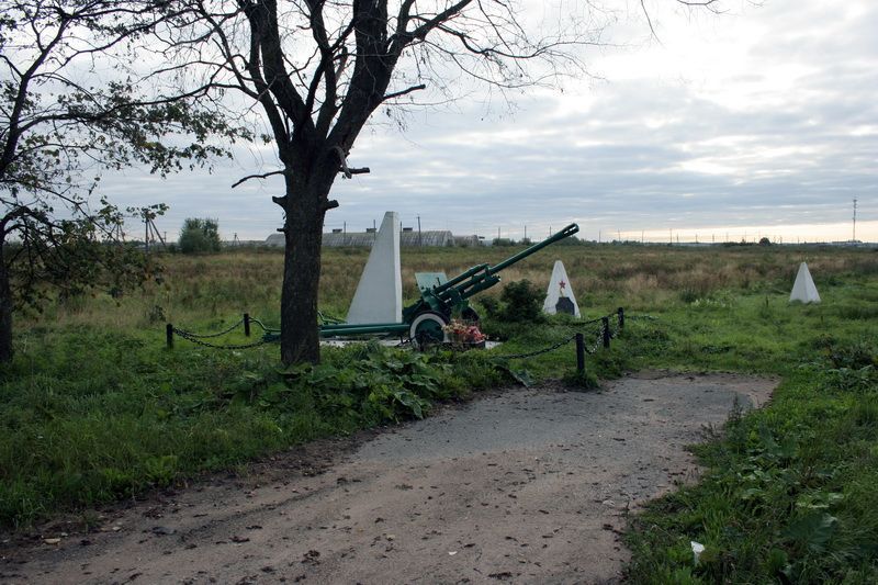 Памятник-пушка и противотанковые надолбы на рубеже обороны советских войск в 1941-44 гг.