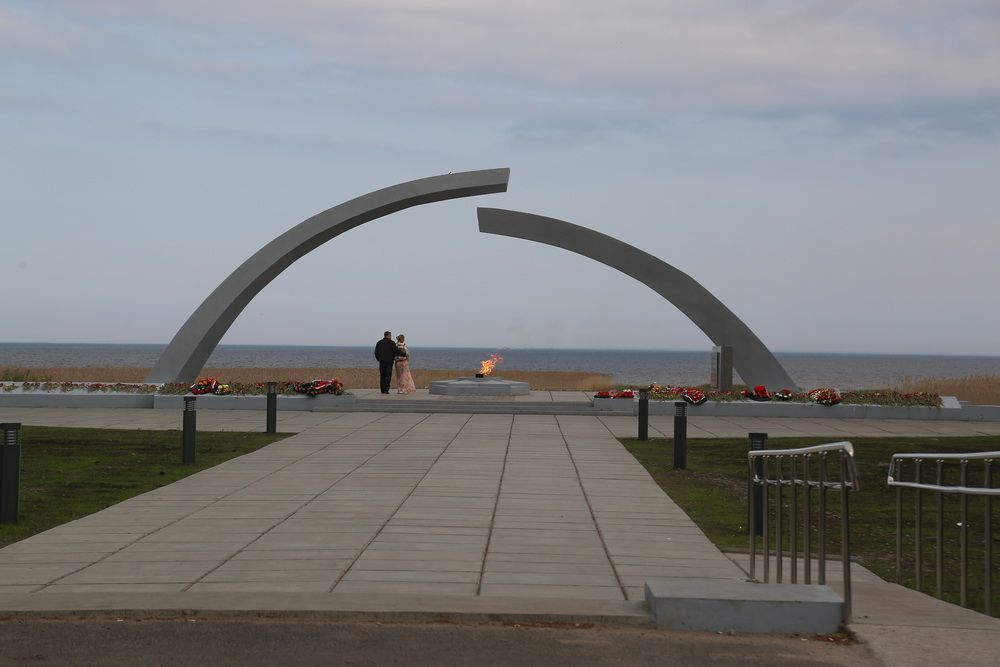 Установлен в 1966 году, авторы проекта: архитекторы Филиппов В.Г., скульпторы Симун К.М., Дугонец В.Т., художник Яковлев В.Н., инженер Рыбин И.А.1. Местоположение памятника у Вагановского спуска к Ладоге, в деревне Коккорево во Всеволожском районе Ленинградской области;2. Средообразующее значение данного памятника в Мемориальном комплексе «Дорога жизни» Ансамбля «Зелёный пояс Славы Ленинграда», сооружённом в память обороны города в 1941-1944 гг.;3. Тематика, композиция, материалы памятника;4. Конструктивные особенности, составные части композиции:4.1. Местоположение, габариты, высотные отметки конструкции в виде железобетонной арки, состоящей из двух разновысотных полудуг, под ними след от протектора грузовика, который ведет к озеру и обрывается у края площадки, нависшей над водой;4.2. Местоположение, габариты установленных с двух сторон перед аркой двух железобетонных шаров, имитирующих прожекторы;4.3. Местоположение, габариты, материал горизонтальной мемориальной стелы из серого гранита с высеченным на ней изображением вечного огня и памятным текстом на мраморной доске:«ПОТОМОК ЗНАЙ! В СУРОВЫЕ ГОДАВЕРНЫ НАРОДУ ДОЛГУ И ОТЧИЗНЕЧЕРЕЗ ТОРОСЫ ЛАДОЖСКОГО ЛЬДАОТСЮДА МЫ ВЕЛИ ДОРОГУ ЖИЗНИЧТОБ ЖИЗНЬ НЕ УМИРАЛА НИКОГДА!»4.4. Местоположение, материалы, цветовое решение установленного на наклонной металлической платформе подлинного 85-миллиметрового зенитного орудия;5. Особенности обработки поверхности арки, стелы, орудия, шаров.