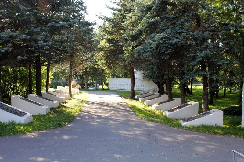 Участок братского захоронения. Фамилии погибших воинов обозначены на памятных досках, установленных на участке братского захоронения и на пяти стелах, у «Вечного огня»