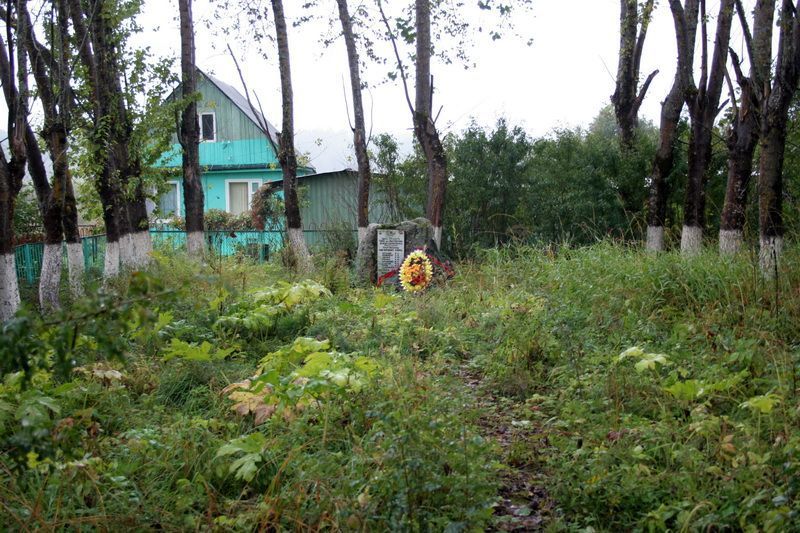 Памятный знак (камень-валун) на месте расстрела фашистами партизан и мирных жителей в 1942 г. Установлена памятная доска с обозначением фамилий погибших
