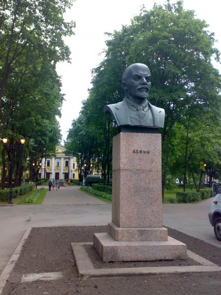 Объемно пространственное решение территории:историческое местоположение в границах территории городского сквера г. Гатчины, на просп. 25 Октября;историческое пространственное и архитектурно-композиционное решение территории, представляющее собой сквер с дорожками, ведущими к памятнику с северо-запада, северо- востока, востока и юго-востока и с многоугольной в плане площадью вокруг памятника;Объемно пространственное решение:историческое местоположение памятника;габариты, композиция памятника, отметки высот поребрика, цоколя, постамента и скульптуры;Архитектурно художественное решение, материалы конструкций:поребрик цветника: исторические габариты, конфигурация (прямоугольная), материал (гранит); цоколь постамента: исторические габариты, конфигурация (прямоугольная, двухступенчатый), оформление (фаски на углах верхней плиты) материал (гранит); постамент: исторические габариты, конфигурация (прямоугольная), материал (гранит);скульптура в виде фронтального погрудного бюста В.И. Ленина, в основании которого расположен подковообразный плинт: исторические габариты, конфигурация, материал (бронза), цвет (черный);текст на северо-западной стороне постамента: «ЛЕНИН»,местоположение, способ нанесения (накладные буквы), материал (металл), цвет (черный);