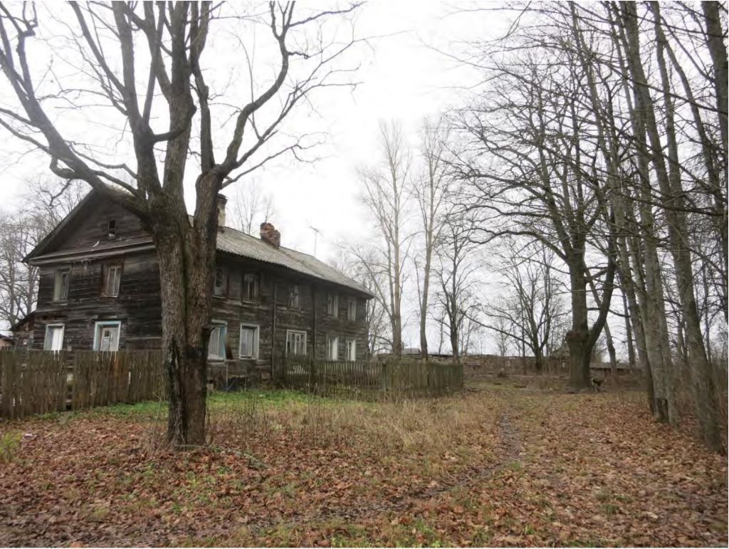 Объемно пространственное и планировочное решение территории:историческое местоположение территории (парк на восточном берегу Череменецкого озера), граничит с севера, юга и востока с застройкой Деревни, с запада - с прибрежной полосой Череменецкого озера; местоположение зданий и сооружений на территории усадьбы: 1. «Господский дом»: местоположение (на краю берегового откоса Череменецкого оз.); 2. «Служебный корпус (Дом управляющего)»: местоположение; 3. «Скотный двор»: местоположение; 4. «Конюшня»: местоположение. историческая объемно пространственная композиция усадебного парка: сочетание открытых пространств (полян, дорог), полуоткрытых (участки парка с ландшафтными группами), закрытых пространств (массивы) с озером, историческими зданиями и строениями; планировочная система (сохранилась частично): регулярная с пейзажными элементами.Планировочная система:исторические дороги:местоположение; трассировка;Насаждения:основной видовой состав: липа мелколистная, сосна обыкновенная,дуб черешчатый, ясень обыкновенный, в т.ч.: солитеры и группы (старовозрастные деревья ценных пород), в т.ч. липа, дуб,сосна, ясень;ряды из средне- и старовозрастных деревьев ценных пород: местоположение (вдоль дорог, аллей, наземляных валах), тип и шаг посадки, исторический видовой состав (липа мелколистная, дуб черешчатый, ясень обыкновенный);аллея из туи западной: местоположение(восточнее трассы 41 К-143, южнее исторической постройки)Рельеф:рельеф в центральной части ровный, в западной - в виде крутого берегового склона значительной протяженности спускающегося к берегу Череменецкого озера;исторические земляные валы: местоположение (с трех сторон на береговом откосе - с севера, юга и запада); габариты; рядовые посадки деревьев (по верху валов)Гидросистема:исторические пейзажные пруды (три пруда): местоположение (в нижней пологой части склона); габариты; абрисбереговой линии; берегоукрепление (откос до уреза воды - одерновка, дно - булыжник?)Малые архитектурные формы:историческая каменная лестница: местоположение (на береговом откосе по оси господского дома, ведущая на спланированную террасу на береговом откосе с видом на озеро); конфигурация в плане; габариты