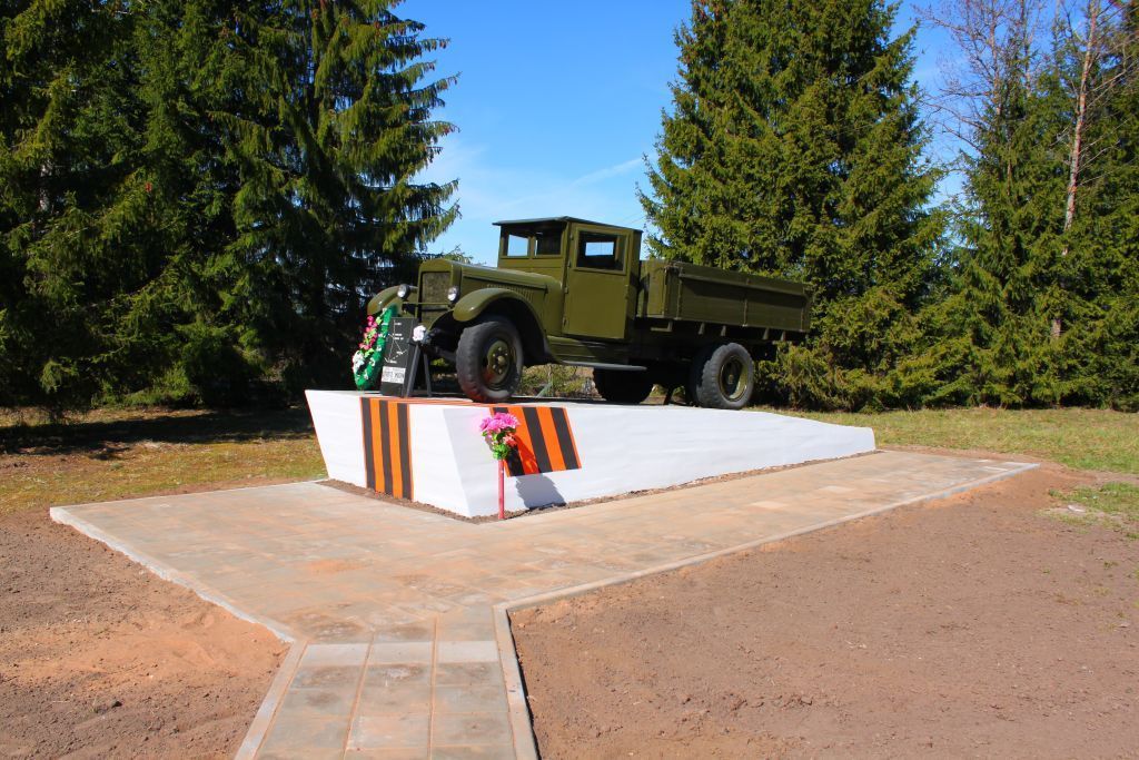 Памятный знак – «Автомашина ЗИС-5», установленный на «Дороге жизни», которая проходила здесь в 1941-1942 гг.