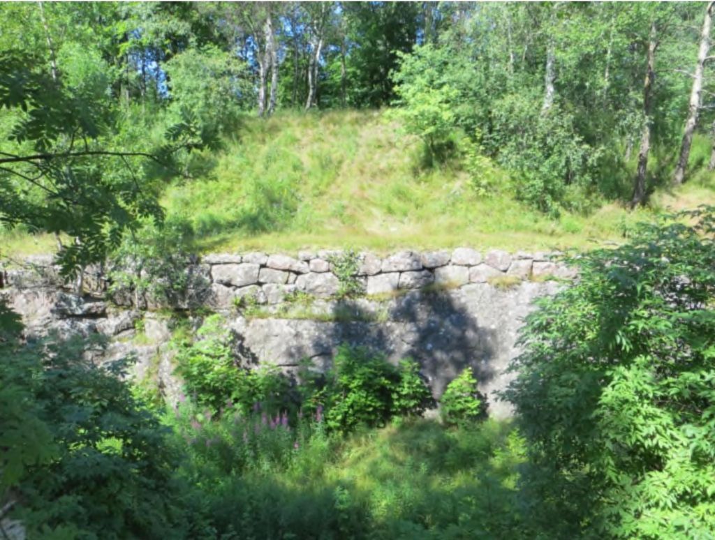 Объемно - пространственное и планировочное решение: Исторические местоположение, габариты и конфигурация прямоугольного в плане земляного долговременного сооружения с потерной в центральной части куртины, рвом, высотные отметки сооруженияКонструктивная система:Облицовка гранитом эскарпов рва и контрэскарпа рва;Вал куртины - исторические: местоположение, конфигурация в плане, габариты, материал (земляная насыпь); Внутренние и наружные капитальные стены потерны - исторические: местоположение, габариты, материал (гранитные блоки гладкой фактуры.ИИкирпич);Своды перекрытия потерны исторические: местоположение, габариты цилиндрического свода, материал (кирпич).Архитектурно - художественное решение:Оформление арочного полуциркульного проема потерны архивольтом; Облицовка стен потерны гранитными блоками гладкой фактуры