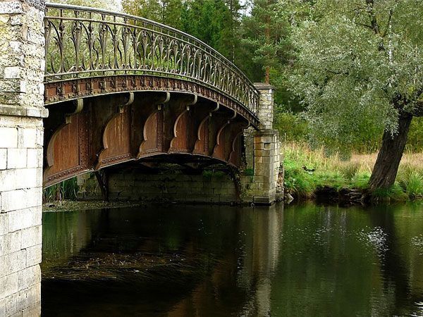 Местоположение, исторические габариты, конфигурация чугунного однопролетного арочного моста, включая опоры (береговые устои); конструкция (арочная) – материал (металл); металлическая конструкция пролетов из клепаных ферм с продольными и поперечными балками, с криволинейным нижним и верхним поясами, опирающимся на кронштейны в виде гнутого уголка с заполнением - рисунок (три кольца); местоположение, габариты, конфигурация; материал (металл);основание и облицовка устоев (известняковые блоки), материал (известняк); основание ограждения полотна проезжей части вынесено на фигурных кронштейнах - местоположение, габариты, конфигурация; материал (металл);основание покрытия полотна проезжей части – металлический профилированный лист;тумбы ограждения с профилированным навершием – материал (известняк), габариты, конфигурация;перильные ограждение (в виде вертикальных стоек с нижней и верхней тетивами); рисунок заполнения (в виде гнутых прутьев с волютами; материал (металл)