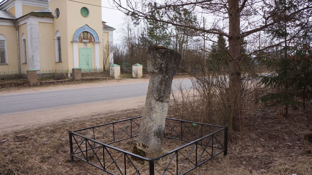 Местоположение объекта на территории деревни Курск; местоположение объекта на земельном участке (лицевая (восточная) часть столба обращена к дороге);архитектурно-композиционное решение памятника, представляющее собой стелу, выполненную из известняка с трапециевидным луковичным завершением, поставленную на двухступенчатую базу из известняковой плиты; в верхней части помещен текст: «СЕЛО ЯБЛОНИЦЫ КРН. СОБСТВ. РЕВИЗ. ДУШ 101(неразборчиво) ЗЕМЛИ 164 Д.»; на западной стороне столба указана (процарапана) дата «1895»;габариты и объем памятника: база - 0,55 х 0,38 х 0,5 м; стела - 0,34 х 0,36 х 1,8 м;материал конструкций: известняковый камень.
