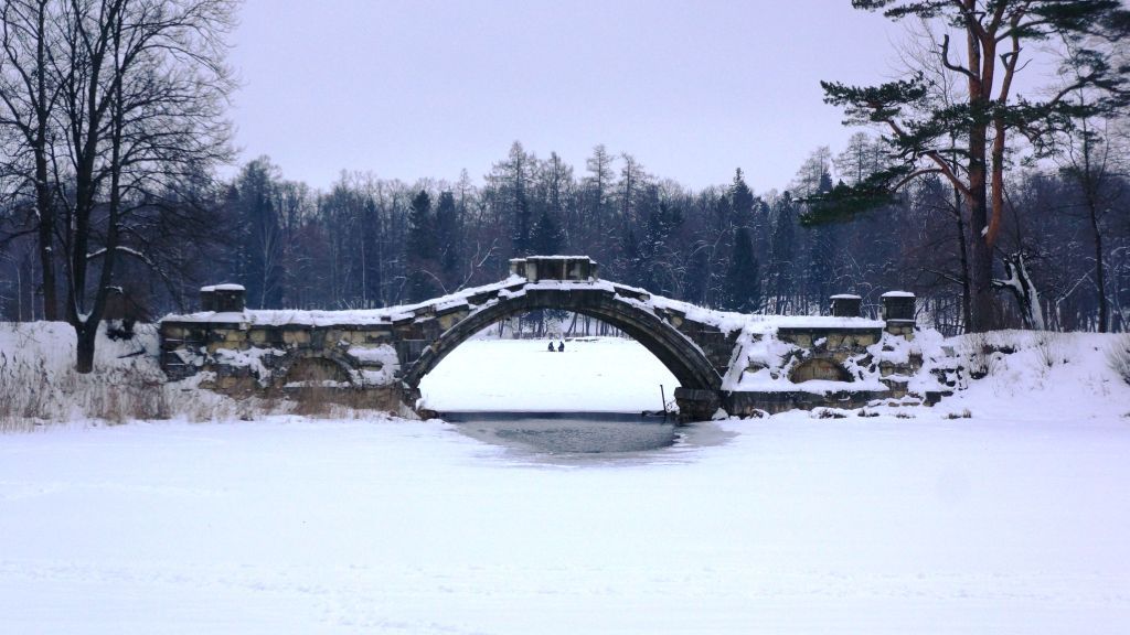 1. Объемно-пространственное и планировочное решение территории: Местоположение объекта Визуальные и композиционные связи с объектами культурного наследия, входящими в состав объекта культурного наследия «Ансамбль Гатчинского дворца и парка».2. Объемно-пространственное решение: Исторические габариты и конфигурация в плане каменного однопролетного арочного моста, состоящего из двух мощных береговых устоев усеченной пирамидальной формы, обнесенных балюстрадой, и арочного пролета с высоким градусом подъема стрелы.3. Конструктивная система: Исторические конструкции:фундамент (плитные каменные устои) под береговыми устоями в виде бревенчатого ростверка на деревянных сваях – габариты, местоположение, материал;береговые устои (опоры) по принципу каменной кладки; высокий самонесущий арочный свод главного пролета моста, коробового очертания, с опиранием на каменные береговые устои – габариты, включая угол подъема пролета, материал (известняк); две каменные лестницы, ведущие на верхнюю площадку моста, с массивными тумбами по сторонам, ограничивающими балюстраду; с каменными скамьями (две «встроенные» скамьи на верхней площадке и четыре «приставных» скамьи на террасах, венчающих устои моста) – местоположение, габариты (включая габариты ступеней и скамей), материал (известняк). 4. Архитектурно-художественное решение: Архитектурно-художественное решение в формах классицизма.Облицовка фасадов*, включая устои, балясины, скамьи на кронштейнах, тумбы, парапеты, поручни, тетивы - доломитизированный известняк;* исключая ряд облицовки в уровне обреза воды облицовка плоскостей трех видовых террас и ступеней лестницы – известняк; верхняя видовая площадка-терраса с покрытием из плит известняка и скамьями из известняка, на кронштейнах – габариты (включая габариты облицовочных плит), местоположение, материал; две нижние площадки-террасы, венчающие устои, облицованные известняковыми плитами, со скамьями большего размера, на кронштейнах – габариты (включая габариты облицовочных плит), местоположение, материал; профилированный карниз фасада пролета моста, с архивольтом, декорированным многочастным замковым камнем, центральный замковый камень декорирован волютой два массивных глухих парапета из крупных блоков известняка на верхней площадке-террасе, ограничивающих балюстрады, для опирания каменных скамей. Две каменные балюстрады, состоящие из двух звеньев над устоями и шести – над мостовым пролетом; ряды балясин, расположенные на нижней тетиве с каменным поручнем – местоположение, габариты, материал, рисунок балясин (в соответствии с исторической иконографией);5. Элементы декора: Глубокие полусферические ниши фасадов трапецевидных устоев, декорированные замковыми камнями – габариты, местоположение, материал, характер кладки.