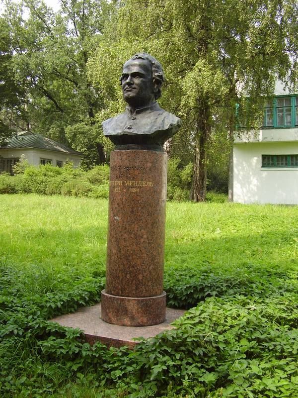1. Местоположение: на аллее перед объектом культурного наследия федерального значения «Старая лаборатория (лаборатория генетики) в которой работал Павлов Иван Петрович»;2. Форма, габариты, материал: высокии постамент из розового шлифованного гранита; на квадратном основании один на другом два цилиндрических снизу вверх уменьшающихся в диаметреобъема; круглый в плане; высота нижних цилиндрических объемов - 0,25 м, диаметр - 0,60 м; высота верхних цилиндрических объемов - 1,25 м, диаметр - 0, 52 м; высота бюста - 0,95 м; надпись «Грегори Мендель 1822 -1884»; материал бюста - бронза.