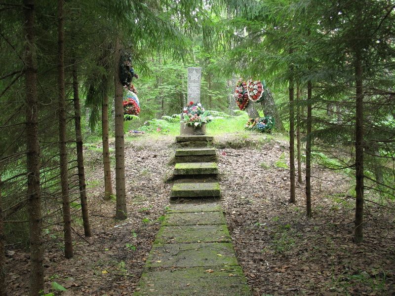 Памятник-дот на Лужском рубеже обороны 1941 г. Рядом памятник-обелиск на месте гибели бойцов 485 полка 177 с.д.