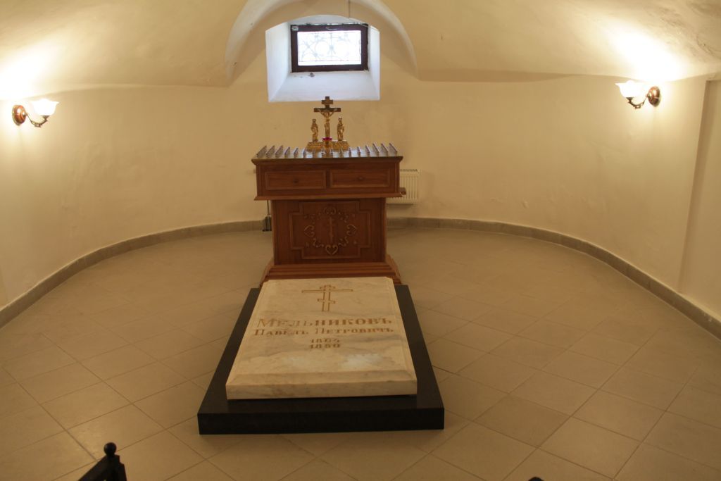 Предметом охраны объекта культурного наследия «Могила Мельникова Павла Петровича (1804-1880)», расположенного по адресу: Ленинградская область, Тосненский район, г. Любань, ул. Ленинградская, д. 1а, в здании Церкви св. апп. Петра и Павла, являются:Объемно-пространственное решение:Местоположение памятника в границах по адресу: Ленинградская область, Тосненский район, г. Любань, ул. Ленинградская, д. 1а, в здании Церкви св. апп. Петра и Павла.Объемно-пространственное решение объекта:Историческое местоположение памятника в границах капитальных стен подвального помещения под алтарной частью церкви;габариты и конфигурация (прямоугольное в плане).Конструктивное решение:Пьедестал:исторические габариты и конфигурация пьедестала;материал (черный гранит);исторические габариты, конфигурация и форма могильной доски;материал (белый мрамор).Архитектурно-художественное решение:Мемориальная надпись:месторасположения, техника исполнения (гравировка), колористическое решение (позолота);текст:«Мельников Павел Петрович1804-1880»