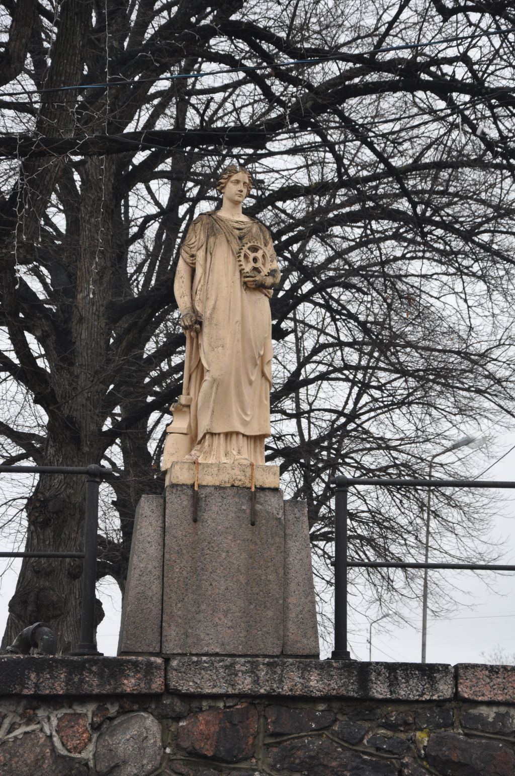 Предметом охраны объекта культурного наследия «Скульптура «Промышленность», расположенного по адресу: Ленинградская область, г. Выборг, близ южной стороны Крепостного моста, являются:Градостроительные характеристики:Местоположение объекта на Крепостной улице.Композиционная роль объекта в структуре окружающего природного и культурного ландшафта.Сохранившиеся исторические габариты.Секторы и направления видовых раскрытий, исторически сложившийся масштаб окружающей застройки.Архитектурные и конструктивные характеристики:Объемно-пространственная композиция, включающая: гранитный постамент из серого гранита; женская фигура полный рост, олицетворяющая промышленность, в левой руке держит шестерню, а в правой — молот, опирающийся на наковальню.Конструктивное решение и габариты памятника.Техника и материал памятника: окрашенный портландцемент, фактура и характер отделки поверхностей.Тема памятника - женский образ, олицетворяющий промышленность.