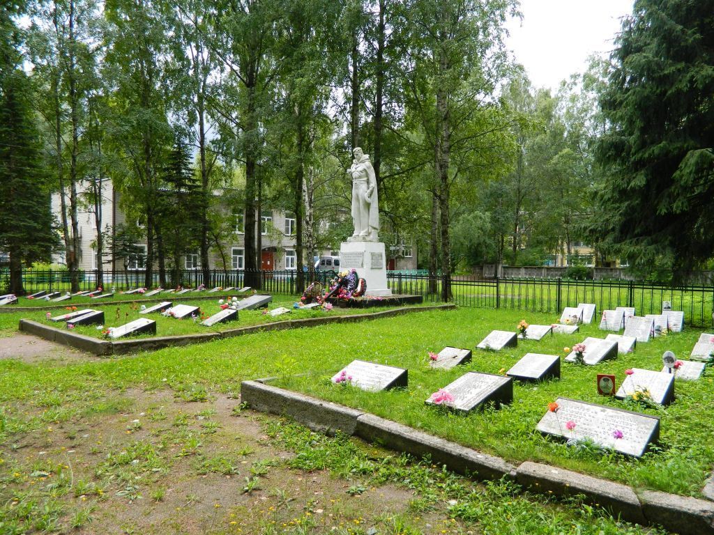 Объемно-пространственное решение:Историческое пространственное и архитектурно-композиционное решение мемориального комплекса братского захоронения.Симметричное расположение трех братских могил с гранитными плитами на них.Конструкции памятника:Мемориальные плиты (материал: полированный гранит), на которых указаны фамилии погребённых воинов.Постамент скульптуры воина (материал: бетон)Скульптура воина на постаменте(материал: бетон).Обрамление захоронений: бетон окрашенный.Ограждение территории памятника:металлическая решетка окрашенная.Архитектурное решение:Кладбище с тремя могилами с мемориальными табличками и скульптурой воина с единственным входом, обращенным на скульптуру.Мемориальная табличка с высеченным текстом \"Воинам Советской армии и морякам-балтийцам, погибшим в боях за Ленинград в 1941-1944 гг.\": металл;Мемориальные плиты высеченными фамилиями погребенных воинов;мрамор белый полированный; Мемориальная плита с текстом «Здесь вместе с другими Советскими воинами захоронен Герой Советского Союза, погибший на «Невском пятачке» Шушин Иван Федорович, пулеметчик 192с.п.63гв.с.д. повторивший подвиг А. Матросова в боях за Ленинград»: мрамор белый полированный; Мемориальная плита с текстом «Герой Советского Союза капитан Кузнецов А.И 26.04.1914- 12.01.1941»: гранит полированный.