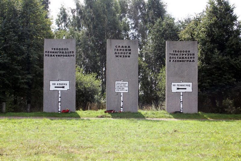 Мемориальный (шоссейный, не асфальтированный) участок «Дороги жизни» протяженностью 280 пог. м, где установлены три памятных знака-стелы