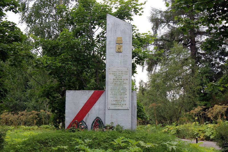 Памятник-стела на месте, где в 1941-44 гг. находился штаб 9-й партизанской бригады