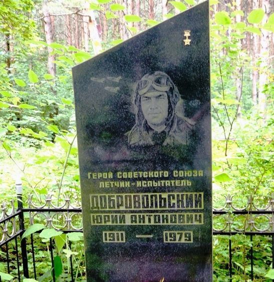 Объемно-пространственное решение:Пространственное и архитектурно-композиционное решение территории памятника.Конструкции памятника;Стела: гранит полированный. Надгробие: гранитные плиты на бетонном основании.Обрамление надгробия - гранит полированныйАрхитектурное решение:Форма, конфигурация в плане, местоположение. Материалы отдельных элементов памятника.По центру стелы — портрет Героя Советского Союза Добровольского Ю.А.В правой верхней части стелы - изображение звезды Героя Советского Союза. Текст на стеле: ГЕРОЙ СОВЕТСКОГО СОЮЗА ЛЕТЧИК-ИСПЫТАТЕЛЬ ДОБРОВОЛЬСКИЙ ЮРИЙ АНТОНОВИЧ 1911-1979.