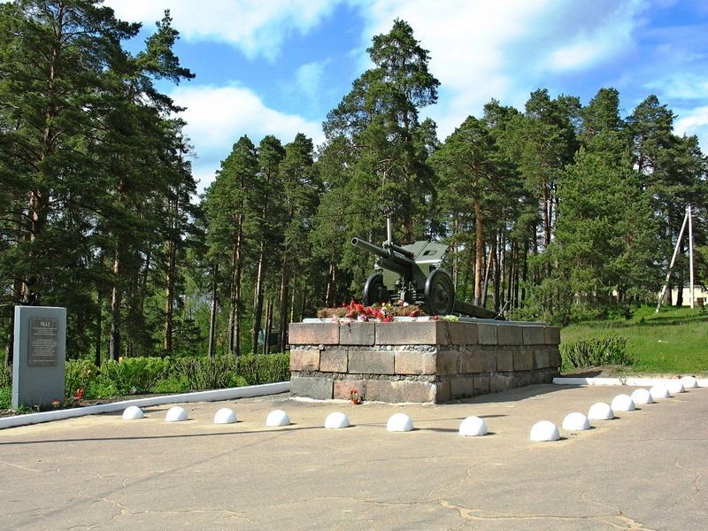 Памятник-пушка и стела, посвященные обороне города в 1941 г., на западной стороне