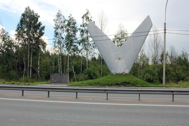 Памятный знак-стела авиаторам ВВС КБФ, защищавшим Ленинград и Дорогу жизни в 1941-44 гг., на месте, где в годы войны находился аэродром