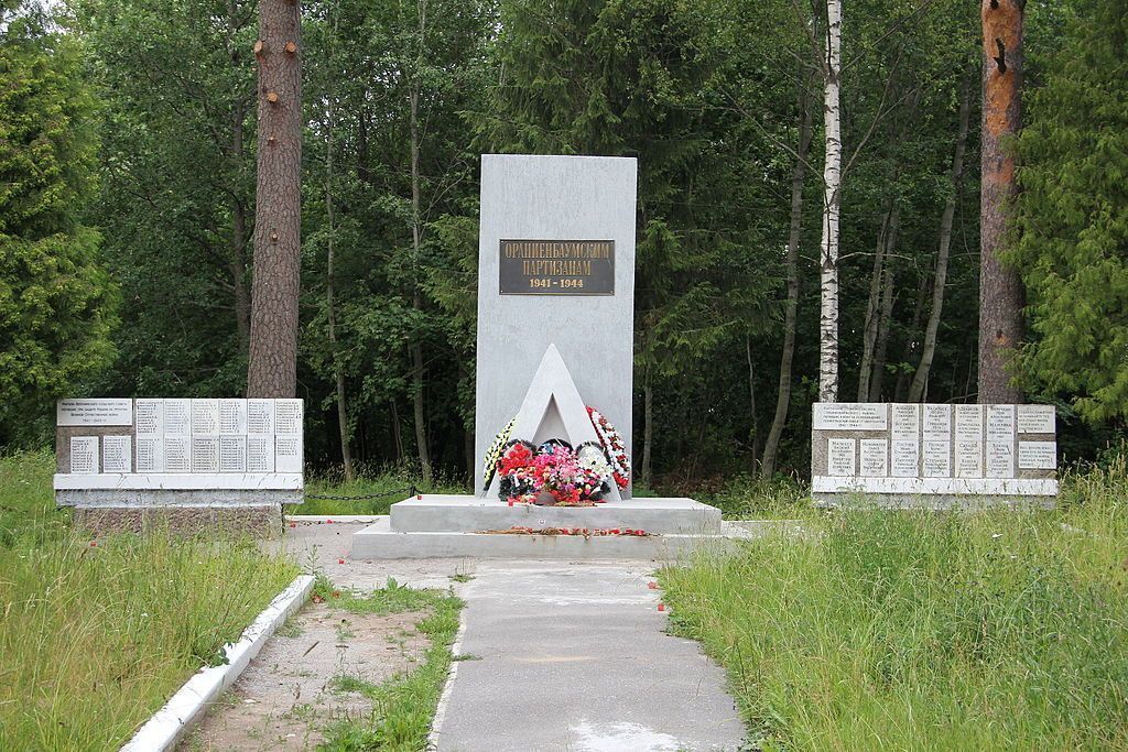 Памятник-шалаш (из бетона) партизанам, действовавшим в зоне этой деревни во время Великой Отечественной войны