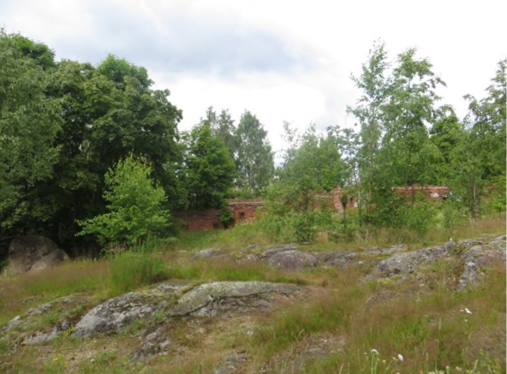 Объемно пространственное и планировочное решение:Исторические местоположение редута - габариты и конфигурация, высотные отметки полигонального в плане земляного долговременного сооружения, включающего вал, ров с гранитными эскарпом и контрэскарпом, с двумя потернами, пятью пороховыми погребами;Историческое местоположение глухой каменной ограды (между левым фланком редута «В» и правым фланком батареи «Б»);Местоположение двух ворот ограды (западные - у правого фланка батареи «Б», восточные - у левого фланка редута «В»); Конфигурация ограды в плане (сочетание прямолинейных участков с двумя выступами в виде стилизованных бастионов), габариты, высотные отметки (ступенчатая на рельефных участках), материал (кирпич, гранит); Сторожка — встроенное в ограду, пятиугольное в плане, одноэтажнное здание с многоскатной крышей — местоположение, габариты, высотные отметкиКонструктивная система:Исторические конструкции фундаментов, местоположение, габариты, материал; Исторические конструкции валов фаса и фланговых валов, траверсов, барбет — местоположение, габариты, материал (насыпные, земляные); Конструкция рва - облицовка эскарпа и контрэскарпа гранитным камнем «рваной» фактуры;Фундамент казармы № 1: исторические: местоположение, конфигурация в плане, габариты, материал (гранитные блоки «рваной» фактуры);Колодец у казармы № 1: историческое местоположение, габариты, материал;Фундамент казармы № 2*: исторические местоположение, конфигурация в плане, габариты, материал (гранитные блоки «рваной» фактуры);*на части исторического фундамента построен сарайЦейхгауз № 1: исторические местоположение, конфигурация в плане, габариты, материал: фундамент - гранитные блоки «рваной» фактуры; наружные и внутренние капитальные стены - исторические местоположение, материал (кирпич); исторические перемычки проемов местоположение, габариты, конфигурация (клинчатые), материал (кирпич);Фундамент цейхгауза № 2: исторические местоположение, конфигурация в плане, габариты, материал (гранитные блоки «рваной» фактуры); Фундамент конюшни № 1: исторические местоположение, конфигурация в плане, габариты, материал (гранитные блоки «рваной» фактуры);Фундаменты конюшни № 2: исторические местоположение, конфигурация в плане, габариты, материал (гранитные блоки «рваной» фактуры);Исторические наружные и внутренние капитальные стены строений, в том числе и подпорные стены - местоположение, габариты, конфигурация в плане, материал (кирпич, гранитные блоки);Исторические перекрытия потерн, пороховых погребов - своды (цилиндрические, коробовые): местоположение, габариты, материал (кирпич);Исторические перекрытия цокольного этажа казармы № 1 - плоские по металлическим балкам с бетонным заполнением; Местоположение, габариты, материал, высотные отметки;Исторические перемычки проемов потерн, пороховых погребов - местоположение, габариты, конфигурация - арочные (полуциркульные, лучковые, трехцентровые), материал (кирпич, гранитные блоки гладкой);Историческая конструкция глухой каменной ограды на гранитном цоколе, контрфорсы между пряслами с внутренней стороны ограды, прясла ограды с проемами бойниц — местоположение габариты, материал (кирпич)Объемно - планировочное решение: Историческое объемно - планировочное решение в габаритах исторических капитальных стен 