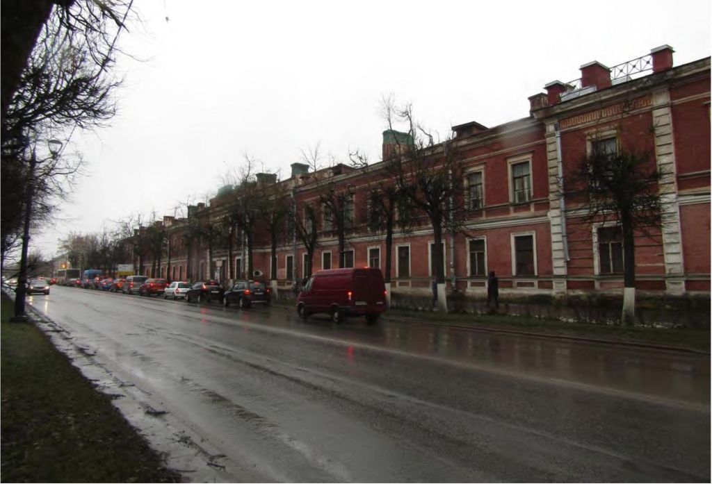 Объемно пространственное решение:исторические местоположение габариты и конфигурация прямоугольных в плане, вытянутых по оси юго-запад - северо-восток, двухэтажных зданий с центральным и боковыми ризалитами лицевых фасадов и центральным ризалитом дворового фасада;исторические местоположение, габариты и конфигурация (четырехскатная, вальмовая) крыши, высотная отметка конька;материал открытия крыши (металл).исторические трубы - местоположение, габариты, конфигурация;Конструктивная система:исторические наружные и внутренние капитальные стены - местоположение, материал (кирпич); исторические отметки перекрытий; лестницы (три ) местоположение, габариты и конфигурация;междуэтажные площадки — местоположение, конфигурация (плоские), габариты и высотные отметки;Объемно-планировочное решение:историческое объемно-планировочное решение в габаритах капитальных стен;Архитектурно-художественное решение:архитектурно-художественное решение фасадов в формах кирпичного стиля;центрально-симметрическая композиция фасадов;историческое колористическое решение фасадов;материал и характер отделки фасадов-лицевой кирпич;материал отделки цоколя (известняк);исторические дверные проемы* - местоположение, габариты, конфигурация (прямоугольные), оформление (профилированный наличник);частично заложеныисторические заполнения дверных проемов*: двустворчатые двери - исторический рисунок (филенчатые), материал (дерево), остекленная фрамуга;*большинство утраченоисторические оконные проемы* - местоположение, габариты и конфигурация (прямоугольные, прямоугольные с полуциркульным завершением в центральной части дворового фасада), оформление прямоугольных (профилированные наличники в уровне 1 -го этажа, профилированные наличники с прямыми сандриками в уровне 2-го этажа, профилированные наличники с подоконными карнизами и архивольтами оконных проемов с полуциркульным завершением);* частично заложеныисторические заполнения оконных проемов* — исторический рисунок расстекловки (многочастный),материал (дерево), цвет (коричневый);* частично утраченыоформление фасадов: профилированные подоконные тяги в уровне 1 -го и 2-го этажей; профилированная межэтажная тяга; профилированная тяга в уровне цоколя и нижней линии антаблемента; профилированный венчающий карниз; западающие филенки в профилированных рамках в оформлении подоконных частей;рустованные лопатки в уровне 1-2-го этажей; прямоугольная профилированная рама в межоконном пространстве в уровне 2-го этажа центрального ризалита лицевого фасада; аттик ступенчатой формы со стороны, венчающий центральный ризалит лицевого фасада - местоположение, габариты, конфигурация, оформление (фланкирующие тумбы, профилированные рамы сложной формы, венчающий профилированный карниз);