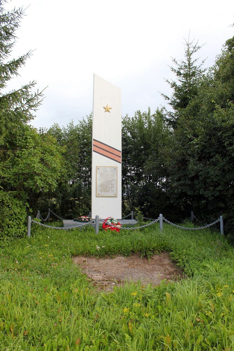 Памятник-стела бойцам-разведчикам из отряда Героя Советского Союза Знаменского В.С., погибшим в зоне этой деревни 24/VII-1941 г.