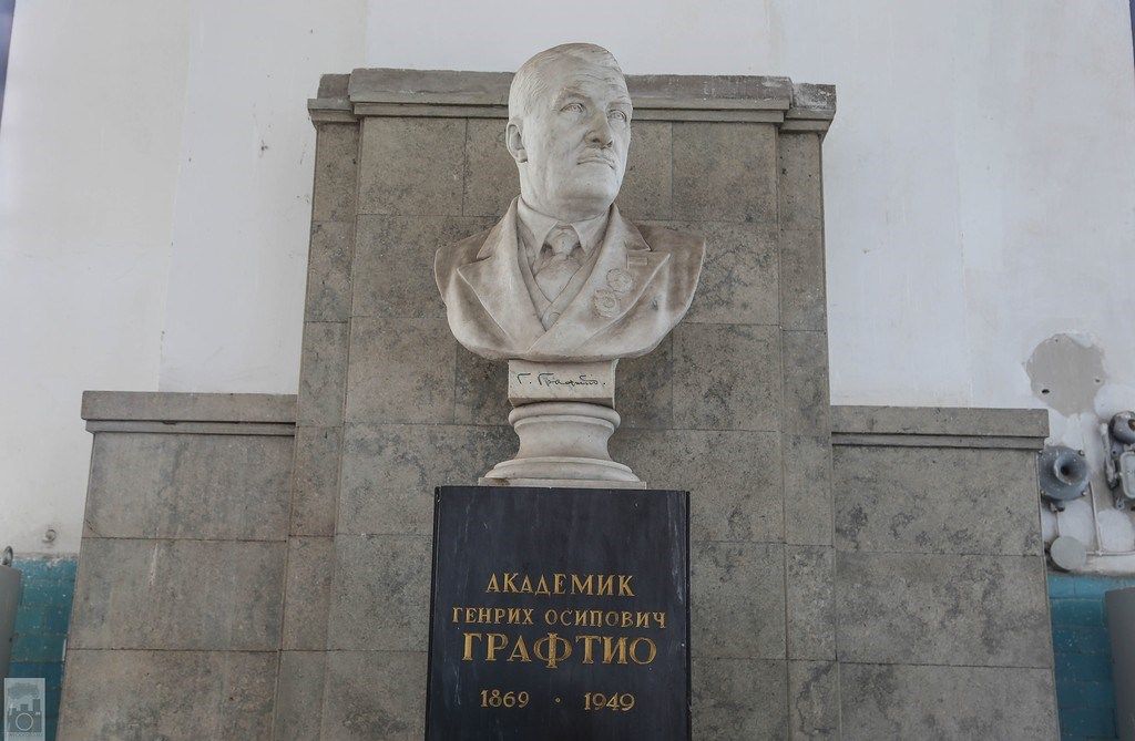 Предметом охраны объекта культурного наследия «Бюст Г.О. Графтио», расположенного по адресу: Ленинградская область, Волховский муниципальный район, г. Волхов, в зале Волховской ГЭС имени Ленина, являются:Пространственные характеристикиМестоположение объекта на территории и в помещениях Волховской ГЭС, у северо-западной стены машинного зала.Сохранившиеся исторические габариты памятника, постамента, площадки и декоративного оформления стены помещения в месте установки памятника.Секторы и направления видовых раскрытий на памятник при проходе по машинному залу ГЭС.Архитектурные и конструктивные характеристикиОбъемно-пространственная композиция, в которую входят:- Т-образная площадка, облицованная мрамором (горизонтальная поверхность - бежевым, торцевые поверхности - черным);- постамент квадратного сечения, облицованный черным мрамором;- бюст Г.О. Графтио из белого мрамора на круглой базе;- декоративная облицовка стены на разную высоту за памятником плитами полированного известняка с тянутыми карнизами из известняка.Конструктивное решение и габариты памятника.Техника и материал памятника: бюст - белый мрамор;постамент - черный мрамор;площадка - горизонтальная поверхность - бежевый мрамор, вертикальные поверхности - черный мрамор;стена за памятником - известняк полированный.Текст на постаменте:«АКАДЕМИКГЕНРИХ ОСИПОВИЧГРАФТИО1869- 1949».Техника исполнения мемориальной надписи - вырубка текста в поверхности облицовки постамента с последующей прокраской золотой краской.