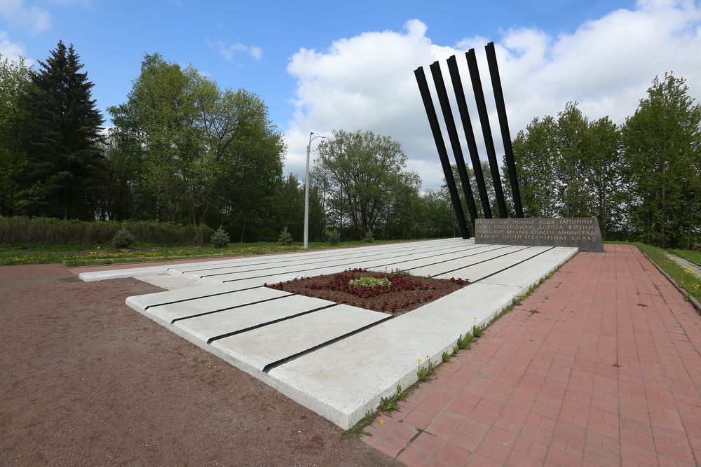 Сооружен и открыт в 1965 г., архитекторы Чулкевич Л.В., Левенков А.Д., Мельников П.И.1. Местоположение памятника в д. Корнево, на месте, где стояла зенитная батарея, отражавшая налёты вражеских самолётов и охранявшая подступы к Ленинграду;2. Средообразующее значение памятника в формировании окружающего ландшафта и мемориальной зоны Дороги жизни, которая проходила здесь в 1941-1942 гг.;3. Тематика, композиция, материалы памятника;4. Конструктивные особенности, составные части композиции:4.1. Местоположение, количество, габариты, материалы, цветовое решение укрепленных под углом в общем основании, на расстоянии друг от друга, металлических двутавров;4.2. Местоположение, габариты мемориальной горизонтально расположенной стелы с высеченными стихотворными строками М.А.Дудина: «1941-1943 ЭТИГРОЗНЫЕ ГОДЫ ЗАПОМНИ// ЗДЕСЬ ПРОХОДИЛА ДОРОГА ЖИЗНИ //МУЖЕСТВОМ ХРАБРЫХ СПАСЕН ЛЕНИНГРАД //ПАВШИМ ГЕРОЯМБЕССМЕРНАЯ СЛАВА», техника ее исполнения и цветовое решение;4.3. Местоположение, габариты и высотные отметки постамента;5. Особенности обработки поверхности имитации ракетной установки «Катюша», стелы, надписей.