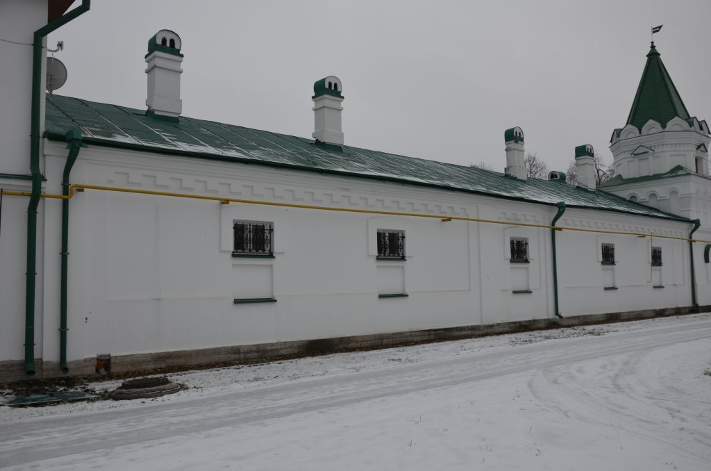 Объемно-пространственное и планировочное решение территории: историческое местоположение каменных стен, формирующих границы территории Ансамбль;историческое архитектурно-композиционное и объемно-пространственное решение территории, на которой расположены и которую формируют стены, исторически сложившийся масштаб окружающей застройки, рельеф и ландшафтные характеристики;композиционные и визуальные связи и видовые раскрытия.Объемно-пространственное и планировочное решение:историческое местоположение, габариты и конфигурация кирпичных глухих стен ограды;историческое местоположение, габариты и конфигурация (скатная) крыш;историческая траектория стен;местоположение ворот и башен в стенах.Конструктивная система: исторические фундаменты – местоположение;исторические стены – местоположение, габариты и конфигурация, материал исполнения (кирпич).Архитектурно-художественное решение фасадов:исторический характер отделки фасадов: западная стена – оштукатурена и окрашена, восточная стена – красный кирпич;историческая облицовка цоколя – материал (известняк);декоративное оформление:плоские лопатки (с внешней и внутренней стороны);килевидные фронтоны с профилированными карнизами в завершении лопаток западной стены;прямоугольные ниши западной стены с завершением в виде сухариков, в пряслах между лопатками;арочная ниша с профилированным оформлением в западной стене;профилированный венчающий карниз с сухариками;профилированный венчающий карниз дворового фасада.