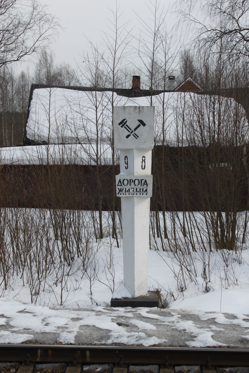 Памятные километровые столбы, установленные на обочине ж.д. линии в 39 местах (в пределах Всеволожского района)
