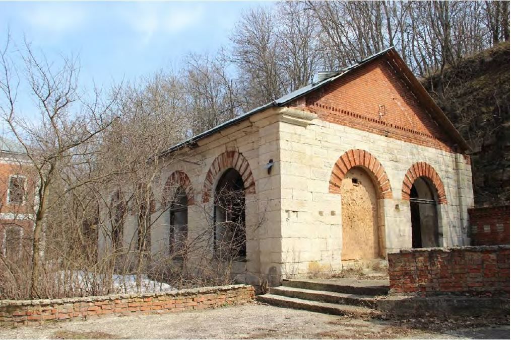 ПРЕДМЕТ ОХРАНЫобъекта культурного наследия регионального значения«Паровое отделение», 1890 г., входящего в состав объекта культурного наследия регионального значения «Усадьба с мельницей купца Н.И. Талдыкина», 1880-1913 гг., расположенного по адресу: Липецкая область, Елецкий район,с/п Волчанский сельсовет, восточнее с. Рябинки Предметом охраны объекта культурного наследия регионального значения«Паровое отделение», 1890 г., входящего в состав объекта культурного наследия регионального значения «Усадьба с мельницей купца Н.И. Талдыкина», 1880-1913 гг., расположенного по адресу: Липецкая область, Елецкий район,с/п Волчанский сельсовет, восточнее с.Рябинки, подлежащим обязательной государственной охране являются:Местоположение: Входит в состав ансамбля объекта культурного наследия регионального значения «Усадьба купца Н.И.Талдыкина с мельницей». Объект расположен на правом берегу реки Воргол на активном рельефе Воргольских скал; главным северо-западным фасадом по второй линии застройки усадьбы; является рядовым объектом застройки ансамбля. Объемно-пространственная композиция: одноэтажное здание из крупных блоков местного белого камня (известняка) с деталями из красного керамического кирпича, прямоугольной в плане конфигурации, выполненное в стиле эклектики с элементами кирпичного стиля, перекрытое двухскатной кровлей. Композиция фасадов:- северо-западного (главного) – симметричная в 4 световые оси;- юго-западного (торцевого) – в 2 световые оси;- северо-восточного (торцевого) – в 1 световую ось заложенного проема подвала.Архитектурно-художественное оформление:- неоштукатуренная и неокрашенная поверхность кладки из крупных блоков белого камня (открытая кладка) (северо-западный, юго-западный, северо-восточный фасады);- неоштукатуренная и неокрашенная поверхность кладки из красного керамического кирпича (открытая кладка) (северо-западный, юго-западный, северо-восточный фасады);- арочные оконные проемы 1 этажа с рустованными архивольтами из красного керамического кирпича (юго-западный, северо-восточный фасады);- арочный дверной проем 1 этажа с рустованным архивольтом из красного керамического кирпича (юго-западный фасад);- прямоугольный (заложенный) проем подвала с лучковой перемычкой из крупных плит белого камня (северо-восточный фасад);- ступенчатый выступ цоколя (северо-западный фасад)- профилированный венчающий карниз из крупных блоков белого камня;- угловые гладкие пилястры из крупных блоков белого камня с профилированными капителями (северо-западный, юго-западный, северо-восточный фасады);- угловая гладкая лопатка из крупных блоков белого камня (юго-западный фасад);- треугольные фронтоны из красного керамического кирпича (юго-западный, северо-восточный фасады);- профилированный карниз фронтонов с зубчатым поясом из красного керамического кирпича (юго-западный, северо-восточный фасады);Конструкция капитальных стен:- наружные капитальные стены подвала и 1 этажа из крупных блоков белого камня (известняка); - наружные капитальные стены фронтонов юго-западного и северо-восточного фасадов из красного керамического кирпича.