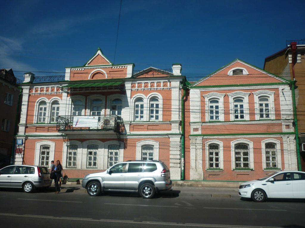 Местоположение: по красной линии застройки ул. Фрунзе. Объемно-пространственная композиция, которая складывается из двух объемов двухэтажных зданий, построенных во II пол. XIX в., восстановленных и объединенных единым планировочным решением внутреннего пространства в 1990-1995 гг.; Композиция фасадов:- южного объема: главного (восточного) - симметричная в пять проемов света на первом этаже, расположенных по схеме 1:3:1, и в семь проемов света на втором этаже, расположенных по схеме 2:3:2, где средняя часть в три световых проема, акцентирована балконом; торцевого (южного) – местоположение оконных проемов первого и второго этажей; дворового (западного) - ассиметричная со смещением входа в южную часть фасада, где первый этаж членится пятью проемами света (второй от южного угла – широкий, на ширину двух оконных проемов, дверной проем), расположенными по схеме 3:1:1, в семь световых проемов на втором этаже, расположенных в мерном ритме, и в три световых проема мансардного этажа, расположенных в мерном ритме; - северного объема: главного (восточного) в три световых оси, расположенных в мерном ритме; дворового (западного) в три световых оси, расположенных в мерном ритме, где крайний южный проем – аварийный выход.Архитектурно-художественное оформление: - южного объема: рустованные лопатки, фланкирующие восточные фасады на первом этаже, лопатки, фланкирующие плоскость восточного фасада на втором этаже, плоскость южного фасада, плоскость мансардного этажа и членящие плоскость восточного фасада второго этажа и плоскость мансардного этажа; рамочный наличник, выполненный из глиняного кирпича на четверть выступающего из плоскости фасада, стойки которого набраны из кирпича поставленного на ложок и в криволинейной части из кирпича, поставленного на постель; оконные проемы с полуциркульным завершением; лучковые оконные проемы; подоконные кирпичные пояски на первом и втором этажах восточного и западного фасадов; ниши межэтажного фриза восточного фасада, межэтажный карниз по периметру здания, венчающий ступенчатый карниз по периметру здания и с поясом ширинок на восточном фасаде, аттик. - северного объема: спаренные пилястры первого этажа восточного фасада; рустованные лопатки, фланкирующие восточные фасады на втором этаже; в уровне первого и второго этажей западного фасада и в уровне первого этажа восточного фасада - рамочные наличники, выполненные из глиняного кирпича на четверть выступающего из плоскости фасада, стойки которых набраны из кирпича поставленного на ложок и в криволинейной части из кирпича, поставленного на постель; в уровне второго этажа восточного фасада - наличники с наборными стойками, на которые опирается лучковый многопрофильный сандрик из тесанного кирпича; лучковые оконные проемы; подоконные кирпичные пояски на первом и втором этажах западного фасада и на втором этаже восточного фасада; подоконные ниши в уровне первого этажа восточного фасада; межэтажный карниз восточного и западного фасадов; венчающий карниз восточного и западного фасадов. Конструкция капитальных стен в редакции кон. XIX в.; Конструктивные особенности перекрытий: своды подвала.