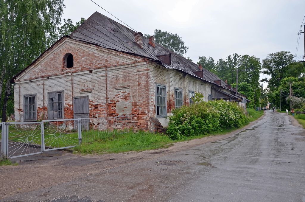 - градостроительные характеристики одноэтажного здания 1874 года постройки, участвующего в формировании застройки усадьбы Шереметевых, включая силуэтные характеристики здания с высокой двухскатной кровлей; - местоположение здания 1874 года постройки на левом берегу реки Волги в северной части усадьбы Шереметевых поселка Юрино Республики Марий Эл; - объемно-планировочная композиция прямоугольного в плане протяженного с запада на восток одноэтажного здания конца 1874 года постройки;- подлинные кирпичные стены, система и конструктивное решение деревянных перекрытий 1874 года постройки; - характер покрытия кровли 1874 года; - композиция и архитектурно-художественное оформление фасадов 1874 года: выступающий цоколь; система рядовых пилястр и угловые пилястры с контрафорсами, завершающимися на отметке подоконника; система крупных прямоугольных окон с деревянными наличниками; характер оконных заполнений; высокая двухскатная кровля и система вентиляционных окон на кровле; глухие торцевые стены здания из кирпича, включая чердачные завершения.