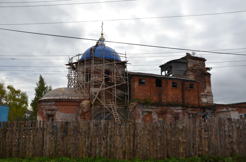 - градостроительные характеристики объекта культурного наследия, главенствующего в формировании застройки восточной части исторической территории города Козьмодемьянска и являющегося градостроительным акцентом завершения улицы Лихачева, включая обзорные точки с территории зон охраны исторической части и обзорные точки с реки Волги;- доминирующее положение объекта культурного наследия на возвышенной восточной части исторической территории;- пространственная и объемно-планировочная структура объекта: прямоугольная в плане трапезная - четверик с южным и северным порталом и вторым светом цилиндрического яруса, крытого купольным сводом – полуциркульная в плане апсида алтаря с лотковым сводом;- подлинные кирпичные стены, система и конструктивное решение сводчатых перекрытий;- конструктивное решение и материал стропильных систем купольного свода четверика и свода алтаря;- система окон; - композиция и архитектурно-художественное оформление фасадов, выполненных в классическом стиле: подлинное обрамление оконных и дверных проемов из точеного кирпича;- объемно-пространственное решение территории объекта культурного наследия, ограниченного северо-западным склоном;- культурный слой XYI-XIX веков в границах территории объекта;