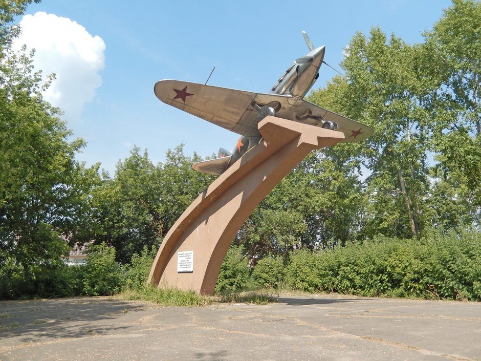 Памятный знак, установленный в честь воинов 49-й армии, защищавших Москву в 1941г. от фашистских захватчиков -самолет "МИГ-3"