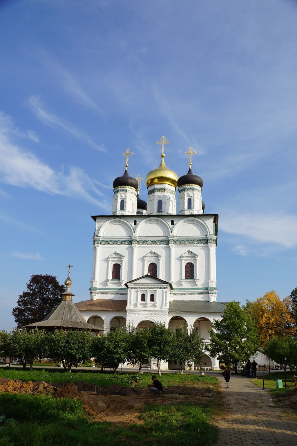 Градостроительные характеристики здания:- местоположение и градостроительные характеристики здания 1688 - 1694 годов композиционного ядра и архитектурной доминанты ансамбля монастыря.Архитектурные характеристики и конструктивные элементы объекта:- объемно-пространственная композиция пятиглавого собора трехнефного, трехапсидного на белокаменном подклете с двухярусной галереей и лестницами на западном, северном и южном и фасадах, в том числе высотные отметки по венчающим карнизам, галереям;- крыши, скатные кровли, купольные завершения глав, кресты, их конструкция, материал, характер кровельного покрытия, в том числе высотные отметки по конькам кровли, зениту глав с крестами;- композиционное решение и архитектурно-художественное оформление фасадов здания XVII, XVIII, начала XX века, включая размер, форму, местоположение и оформление оконных и дверных проемов развитыми наличниками с боковыми колоннами и разорванными треугольными фронтонами, аркатурный пояс барабанов, полихромный изразцовый декор.Материал и характер отделки фасадных поверхностей: побелка стен, изразцовый декор - керамические фризы - \"павлинье око\" в основании закомар четверика и в завершении барабанов, многоцветные рельефные изразцы в парапетах галерей и верхней части рундуков, фрагменты росписи.Характер столярных заполнений дверных и оконных проемов, металлические решетки оконных проемов.Пространственно-планировочная структура здания в пределах капитальных стен, столбов, арочных проемов, система коробовых и сомкнутых сводов с распалубками XVII, XVIII веков.Капитальные стены и перекрытия XVII, XVIII веков, включая сводчатые перекрытия.Архитектурно-художественное оформление интерьеров, включая росписи, выполненные артелью И.М. Сафонова по рисункам архитектора И.С. Кузнецова начала XX века, пятиярусный золоченый резной иконостас главного храма XVII, XVIII веков, фрагменты живописи подклета XIX века.