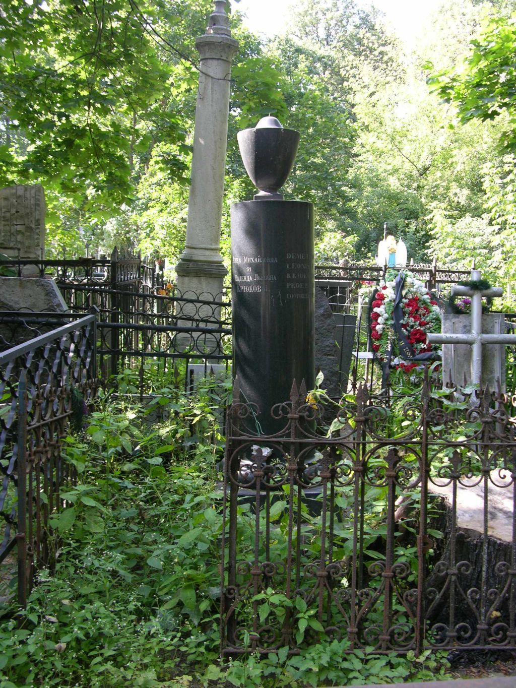 существующее местоположение в общей структуре Ваганьковского кладбища и существующие габариты надгробного сооружения в целом, включая фигурную кованую ограду;объемно-пространственная композиция надгробного сооружения начала XX в.;архитектурно-художественное решение надгробного сооружения, в том числе гладкая колонна с базой, в виде вала и полочки, и с навершием в виде мемориальной урны;основание, квадратное в плане;цоколь;ограда; материал и техника обработки (гранит, металл, полировка, шлифовка, резьба, ковка, окраска).Предмет охраны может быть дополнен при проведении натурных реставрационных исследований.