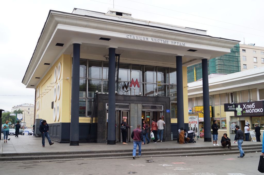 местоположение и градостроительные характеристики наземного вестибюля станции метрополитена 1935 года, его роль в формировании застройки Мясницкой улицы, Тургеневской площади и Чистопрудного бульвара, а также в композиционно-планировочной структуре квартала (согласно схеме предмета охраны);объемно-пространственная композиция прямоугольного в плане, на ступенчатом стилобате наземного вестибюля станции метрополитена 1935 года, включая два открытых четырехколонных портика (согласно схеме предмета охраны), высотные отметки по венчающим карнизам;крыша на 1935 год, ее конструкция, материал, характер кровельного покрытия, высотные отметки по венчающим карнизам и надписи \"Метро\";композиционное решение и архитектурно-художественное оформление фасадов наземного вестибюля 1935 года, включая местоположение, форму, размер, оформление витражных окон в портиках, двадцать четыре круглых окна на боковых фасадах, дверные проемы, софитный венчающий карниз, круглые колонны портиков с гладким фустом с выделенными горизонтальными швами, буквы \"Метро\" над входом со стороны северного фасада, их размер, гарнитура, материал, местоположение (согласно схеме предмета охраны);материал и характер отделки фасадных поверхностей на 1935 год, в том числе: профилированный бетонный цоколь стен, облицовка колонн северной стороны розово-коричневым гранитом, фактурная штукатурка колонн южной стороны, облицовка дверных порталов розово-коричневым гранитом, облицовка стен и пилястр подмосковным известняком, фактурная штукатурка прямоугольных ниш боковых фасадов, гранитные ступени лестниц стилобатов;колористическое решение фасадов на 1935 год, в том числе облицовка стен и пилястр светло-желтым известняком со светло-серым цоколем, молочно-белые ниши боковых фасадов и капители колонн и пилястр, молочно-белый венчающий карниз и перекрытие портиков, молочно-белые буквы \"Метро\" на кровле, розово-коричневые колонны северной стороны и терракотовые колонны южной стороны, розово-коричневый портал входа-выхода, черные металлические элементы (витражи портиков, решетки), темно-коричневые двери и круглые окна с серебристой фурнитурой, золотистые буквы дверных порталов, серебристые буквы названия станции;пространственно-планировочная структура интерьеров станции метро наземного уровня 1935 года, в пределах капитальных стен, опор, плоских, сводчатых перекрытий, в том числе тамбуры входа и выхода, входной двухсветный аванзал, лестничные спуски с поворотными площадками, ведущие в прямоугольный в плане кассовый зал, протяженный, с плавным изгибом, подходной коридор в эскалаторный зал с рядом квадратных в плане колонн по центру, разделяющих его на два встречных потока, прямоугольный в плане эскалаторный зал с плоским перекрытием, опирающимся на массивные балки, и световым подвесным потолком, с наклонным эскалаторным спуском, перекрытым монолитным сводом (согласно схеме предмета охраны);капитальные стены, опоры, плоские и сводчатые перекрытия 1935 года, их конструкция и материал, включая скрытые стальные конструкции (согласно схеме предмета охраны);лестницы 1935 года, их местоположение, конструкции, конфигурации и материал, включая две трехмаршевые лестницы аванзала вестибюля, ведущие в кассовый зал, в том числе гранитные ступени и межлестничные площадки, одна центра