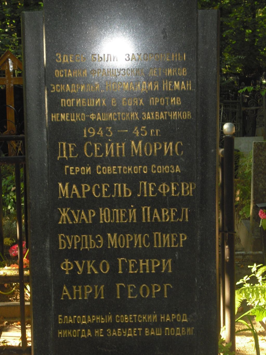 Место бывшего захоронения (с обелиском) французских летчиков полка "Нормандия-Неман" (Марселя Лефевра – Героя Советского Союза, Мориса Бурдье, Жуля Жуара, Генри Фуко, Мориса де Сейна, Жоржа Анри)