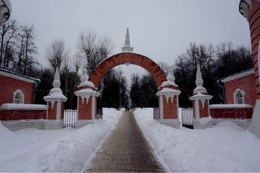 местоположение и градостроительные характеристики сооружения, воссозданного в режиме научной реставрации в 2007 году, его роль в композиционно-планировочной структуре ансамбля усадьбы в целом и ансамбля парадного въезда в усадьбу;объемно-пространственная композиция ворот, с арочным проемом въезда, двумя калитками в каменных столбах, с белокаменными пинаклями, включая высотные отметки по венчающим карнизам и пинаклям, сплошная кирпичная ограда на белокаменном цоколе (с учетом воссоздания 2007 года), а также однопролетный сводчатый мостик надо рвом вокруг усадьбы, с ограждением, обнаруженный и раскрытый в процессе воссоздания ворот, его свод, мощение и белокаменные торцевые фасады;композиционное решение и архитектурно-декоративное оформление ворот (по результатам воссоздания 2007 года);материал и характер отделки ворот, включая окраску по кирпичу без штукатурки, белокаменные детали;колористическое решение ворот последней четверти XVIII-XIX веков (с учетом воссоздания 2007 года).