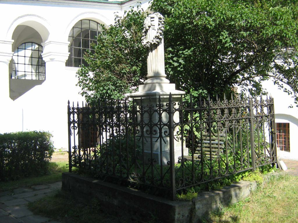 местоположение могилы в общей структуре некрополя Новодевичьего монастыря;объемно-пространственная композиция и существующие габариты надгробного сооружения в целом, включая ограду;архитектурно-художественное решение надгробного сооружения, в том числе стела в виде стилизованной канеллированной колонны с венком из цветов и накладным крестом с базой в виде профилированного вала в нижней части, установленная на плинте;постамент с сильно вынесенным карнизом в верхней части, декорированный профилированными филенками;мемориальные и посвятительские надписи;ограда на цоколе;материал и техника обработки (мрамор, железо, шлифовка, полировка, рельефная резьба, окраска, ковка).Предмет охраны может быть дополнен при проведении натурных реставрационных исследований.