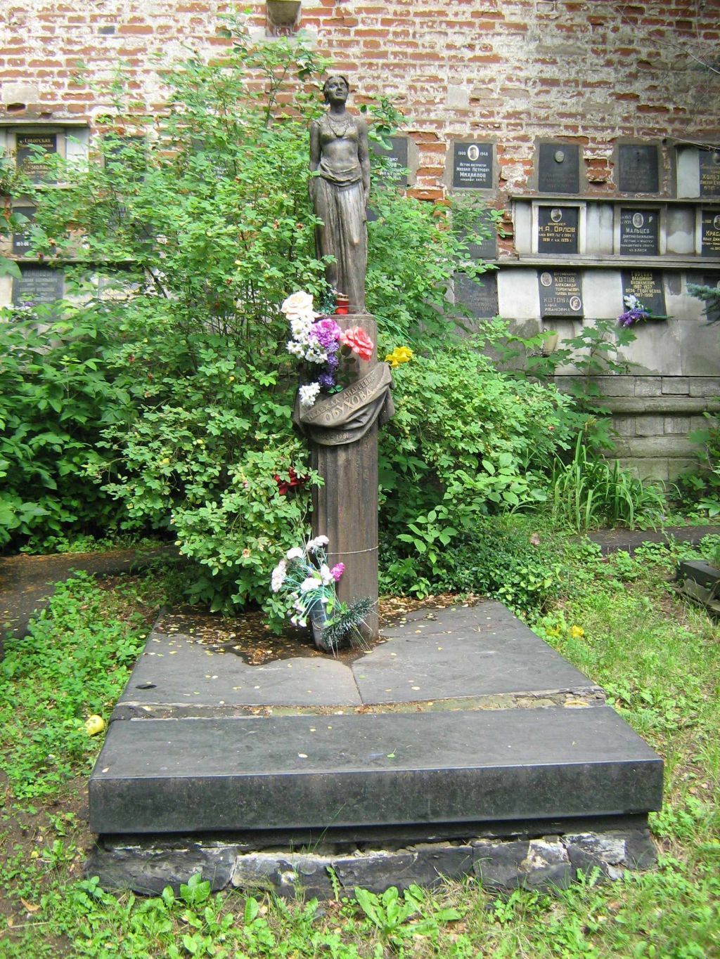 местоположение могилы в общей структуре Новодевичьего кладбища;объемно-пространственная композиция и существующие габариты надгробного сооружения в целом (скульптор М.Аникушин, архитектор Ф.Гепнер, 1977 г.);архитектурно-художественное решение надгробного сооружения, в том числе скульптура Н.А.Обуховой в рост на плинте;постамент в виде каннелированной колонны, перевитой в верхней части бронзовой лентой;подиум, состоящий из равновеликих плит и поперечной плиты, разделенной пояском;мемориальные надписи (рельеф), информация об авторах памятника и дате установки;материал и техника обработки (бронза, патина, литье, лабрадорит, полировка, резьба).Предмет охраны может быть дополнен при проведении натурных реставрационных исследований.