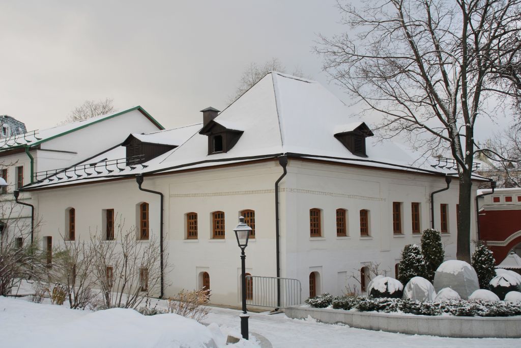 местоположение и градостроительные характеристики здания XVII, XIX веков, его роль в композиционно-планировочной структуре ансамбля монастыря и квартала (согласно приложению к настоящему предмету охраны);объемно-пространственная композиция одноэтажного с полуподвалом здания сложной конфигурации в плане, включающая прямоугольные в плане палаты XVII века с выступом на северном фасаде и северную пристройку XIX века (согласно приложению к настоящему предмету охраны), в том числе высотные отметки по венчающим карнизам;крыши XIX века, их конфигурация, материал, характер кровельного покрытия, в том числе высотные отметки по конькам, включая слуховые окна, печные и вентиляционные трубы;композиционное решение и архитектурно-художественное оформление фасадов XVII, XIX веков, включая размер, форму, местоположение, оформление оконных и дверных проемов, в том числе прямоугольные ниши окон, подоконные полочки, лопатки, пояс поребрика, венчающий карниз (согласно приложению к настоящему предмету охраны);материал и характер отделки фасадных поверхностей XVII, XIX веков: окраска по кирпичу;колористическое решение фасадов XVII, XIX веков;пространственно-планировочная структура интерьеров здания в пределах капитальных стен, прямоугольных и арочных проемов и перекрытий XVII, XIX веков (согласно приложению к настоящему предмету охраны);капитальные стены и перекрытия XVII, XIX веков, их конструкции и материал, включая одностолпную палату и сводчатые перекрытия с распалубками XVII века (согласно приложению к настоящему предмету охраны);архитектурно-художественное оформление интерьеров XIX века: профилированные карнизы потолков, профилированные тяги по ребрам свода с розеткой на средокрестии (согласно приложению к настоящему предмету охраны);печи XIX века, их местоположение и конструкция, включая печной прибор (согласно приложению к настоящему предмету охраны);характер оформления столярных заполнений оконных и дверных проемов XVII, XIX веков.Изменение предмета охраны может быть осуществлено в порядке и случаях, предусмотренных законодательством об объектах культурного наследия.