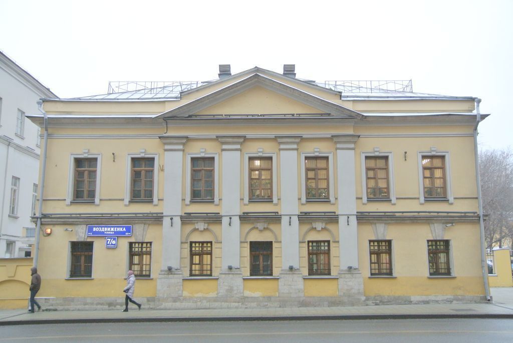 местоположение и градостроительные характеристики здания, участвующего в формировании фронта застройки улицы Воздвиженка, его роль в композиционно-планировочной структуре ансамбля владения;объемно-пространственная композиция двухэтажного здания 1817 года, (с учетом реставрационных работ 1994 года);крыша 1817 года, выполненная в соответствии с проектом реставрации 1994 года, ее конструкция, конфигурация и высотные отметки;композиционное решение и архитектурно-художественное оформление фасадов 1817 года (с учетом реставрационных работ 1994 года), в том числе местоположение, форма, размер и оформление оконных, дверных проёмов;пространственно-планировочная структура здания в пределах капитальных стен 1817 года (с учетом реставрационных работ 1994 года).