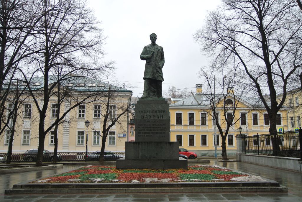 местоположение и градостроительные характеристики памятника Н.Э.Бауману 1931 года в Пушкинском сквере, его роль в формировании объемно-пространственной структуры Елоховской площади (согласно схеме предмета охраны);объемно-пространственная композиция памятника 1931 года, включающая двухступенчатое основание с высоким стилобатом, квадратный в сечении гранитный постамент и бронзовую скульптуру Н.Э.Баумана, в том числе габариты и высотные отметки памятника (согласно схеме предмета охраны);архитектурно-художественное оформление бронзовой скульптуры Н.Э.Баумана на квадратном плинте 1931 года, изображающей революционера в полный рост, включая глыбообразную форму у ног, связывающую фигуру с плинтом (согласно схеме предмета охраны);архитектурно-художественное оформление гранитного постамента 1931 года, включая три бронзовых рельефа на боковых сторонах постамента с многофигурными композициями, иллюстрирующими три наиболее ярких эпизода из жизни Н.Э.Баумана, местоположение рельефов на постаменте, их конструкцию крепления, шрифтовые композиции, в том числе форму, габариты, высотные отметки (согласно схеме предмета охраны); шрифтовая композиция на юго-восточной стороне постамента с надписью: \"Николай Эрнестович Бауман 1873–1905\" и текстом со словами В.И.Ленина: \"Пусть послужат почести, оказанные восставшим народом его праху, залогом полной победы восстания и полного уничтожения проклятого царизма\", включая способ нанесения (согласно схеме предмета охраны);шрифтовая композиция на юго-западной стороне постамента в нижней части рельефа: \"т. Бауман был арестован в 1902 году по делу организации \"Искры\" и бежал из киевской тюрьмы вместе с 10 товарищами\", включая способ нанесения (согласно схеме предмета охраны);шрифтовая композиция на северо-западной стороне постамента в нижней части рельефа: \"Н.Э.Бауман за активную революционную деятельность в Петербурге был арестован в 1897 году и находился в заключении 22 месяца в Петропавловской крепости\", включая способ нанесения (согласно схеме предмета охраны);шрифтовая композиция на северо-восточной стороне постамента в нижней части рельефа: \"Убийство т. Баумана показывает ясно, что царский манифест 17 октября был ловушкой. Чего стоят все эти обещания свободы, пока власть и вооруженная сила остается в руках правительства\", включая способ нанесения (согласно схеме предмета охраны);шрифтовая композиция на северо-восточной стороне основания: \"Памятник сооружен в 1931 г. по заданию Бауман. райсовета общественных московских художников /омх/ исполн. скульпт. Б.Д.Королев АРТЕЛЬ \"Гранит\" ЗАВОД \"Технолог\", включая способ нанесения;конструкция, характер обработки, колористическое решение, материал памятника 1931 года: постамент с основанием – гранитные блоки и плиты серого цвета, скульптура с плинтом и рельефы – бронза.Изменение предмета охраны может быть осуществлено в порядке и случаях, предусмотренных законодательством об объектах культурного наследия.