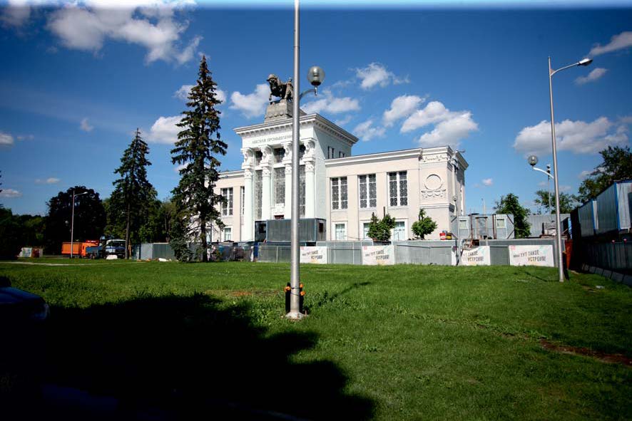 местоположение и градостроительные характеристики здания, его роль в композиционно-планировочной структуре ВДНХ (согласно схеме предмета охраны);объемно-пространственная композиция здания 1954 года с центральным ризалитом и возвышающимся объемом, увенчанным скульптурной группой на ступенчатом постаменте, включая высотные отметки по венчающим карнизам, постаменту, скульптурной композиции (согласно схеме предмета охраны);крыши 1954 года, их материал конструкций, конфигурация, высотные отметки, характер кровельного покрытия;композиционное решение и архитектурно-художественное оформление фасадов 1954 года, включая размер, форму, местоположение и оформление оконных и дверных проемов, центральный ризалит с колоннами в ¾ на пьедесталах, с аттиком (полуколонны, завершенные двухчастными капителями со скульптурным изображением торса и головы быков с элементами композитного ордера) на скульптурных торсах быков на главном фасаде, раскреповка углов главного и боковых фасадов и их декоративное лепное оформление, пилястры 3-го этажа дворового фасада и боковых фасадов ризалита, лепные рельефные панно под окнами боковых фасадов, декоративное лепное оформление постамента венчающей скульптуры, декоративные металлические решетки витражей главного фасада, декоративные металлические решетки под окнами на главном фасаде, литые объемные буквы надписей на ризалите главного фасада, венчающие карнизы по периметру стен ризалита и стен основного объема здания, межэтажный карниз, ступени и парапеты парадного крыльца, их конструкция и материал (согласно схеме предмета охраны);конфигурация и ландшафтный характер площадки по периметру здания 1954 года с террациевидными лестницами вдоль боковых и заднего фасадов;скульптурная группа \"Человек с быком\" 1954 года на постаменте, скульптор Н.А.Конгиссер, их композиция, конструкция, материал, высотные отметки;материал и характер отделки фасадных поверхностей 1954 года, в том числе отделка цоколя и парапетов парадного крыльца декоративной терразитовой штукатуркой с фактурой \"под шубу\", декоративная терразитовая пигментированная штукатурка с фактурой \"под шубу\" стен здания и постамента скульптуры, раскреповка плоскостей стен и углов, в том числе цоколя и парапетов парадного крыльца, узкими плоскими штукатурными рамками с гладкой поверхностью;колористическое решение фасадов 1954 года;пространственно-планировочная структура интерьеров здания 1954 года в пределах капитальных стен, колонн и перекрытий (согласно схеме предмета охраны);капитальные стены 1954 года, в том числе колонны, перегородки, перекрытия, балконная плита по балкам, их конструкции и материал (согласно схеме предмета охраны);перекрытие парадного холла в виде светопрозрачного купола 1954 года (согласно схеме предмета охраны);парадная лестница 1954 года, ее местоположение и конструкция (согласно схеме предмета охраны);служебные лестницы 1954 года, их местоположение и конструкция (согласно схеме предмета охраны);архитектурно-художественное оформление интерьеров здания 1954 года, в том числе мозаичные мраморные и керамические, паркетные полы парадных помещений, балкона и площадок парадной лестницы, мраморные ступени лестницы, облицовка стен мраморными плитами, цветной декоративной штукатуркой с полированной поверхностью, искусственным мр