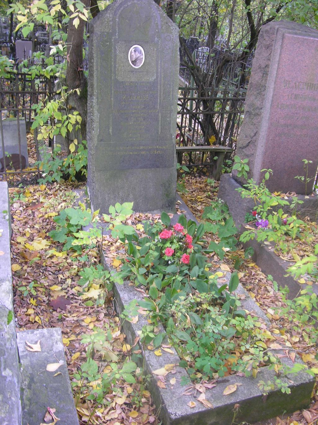местоположение могилы Киквидзе Василия Исидоровича с надгробным памятником 1935 года, на территории Ваганьковского кладбища на участке № 59 (согласно схеме предмета охраны);объемно-пространственная композиция памятника 1935 года на могиле красного командира, активного участника гражданской войны Киквидзе Василия Исидоровича, представляющего гранитную стелу по типу обелиска с наклонной лицевой поверхностью с трехгранным завершением, установленную на выступающее гранитное основание с граненой верхней поверхностью, и оформленную на лицевой стороне изображением триумфальной арки с двумя витыми колоннами на высоких постаментах, выгравированной в люнете пятиконечной звездой с серпом и молотом с золочением по контуру, керамическим медальоном овальной формы с портретом героя на матовом фоне – прямоугольной \"табличке\" с обратно закругленными углами, и памятными надписями, включая габариты и высотные отметки, а также цветочницу у подножия памятника из гранитных брусков (согласно схеме предмета охраны);конструкция, материал (гранит, керамика), характер и виды обработки поверхностей (грубо тесанная фактура естественного камня, полировка, тонкая и фактурная шлифовка, гравировка) памятника 1935 года;шрифтовая композиция на лицевой стороне стелы с памятной надписью в арке под портретом героя со словами: \"НАЧАЛЬНИК ДИВИЗИИ 16 РАБОЧЕ-КРЕСТЬЯНСКОЙ КРАСНОЙ АРМИИ КИКВИДЗЕ. КРАСНОГВАРДЕЕЦ-ПАРТИЗАН, ОРГАНИЗАТОР РЕВОЛЮЦИОННОЙ БОРЬБЫ ПРОТИВ ДОНСКОЙ КОНТР-РЕВОЛЮЦИИ В 1918 ГОДУ, ПОГИБШИЙ СМЕРТЬЮ ГЕРОЯ ПОД ХУТОРОМ ЗУБРИЛОВКА СТАЛИНГРАДСКОГО КРАЯ 11 ЯНВАРЯ 1919 ГОДА\", ниже: \"ПОСТАВЛЕН ДЕЛЕГАЦИЕЙ ЗЕРНОСОВХОЗА ИМЕНИ КИКВИДЗЕ СТАЛИНГРАДСКОГО КРАЯ 14 НОЯБРЯ 1935 ГОДА\", включая технику нанесения (контррельеф, позолота), характер шрифта, покрытие и колористическое решение (согласно схеме предмета охраны).Изменение предмета охраны может быть осуществлено в порядке и случаях, предусмотренных законодательством об объектах культурного наследия.